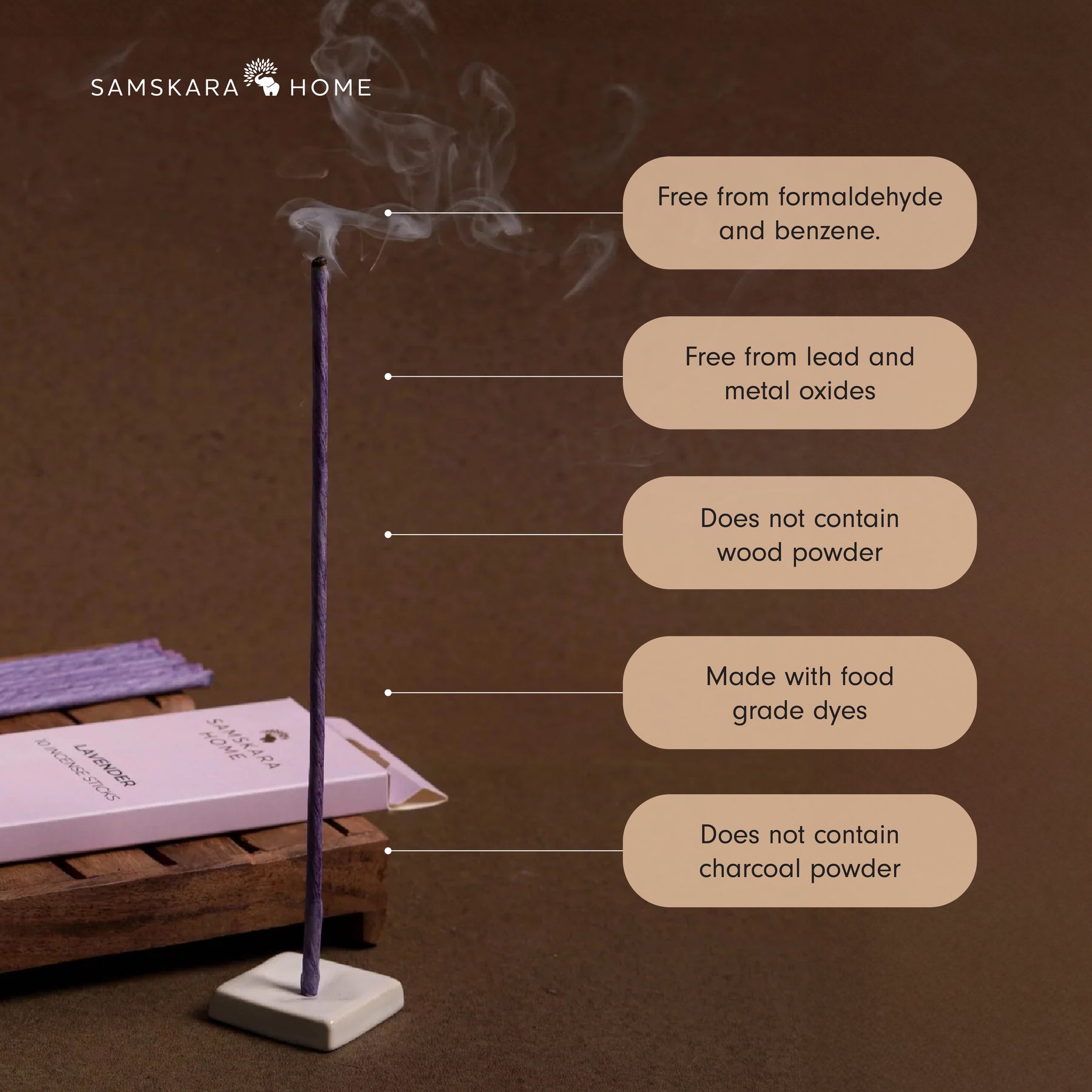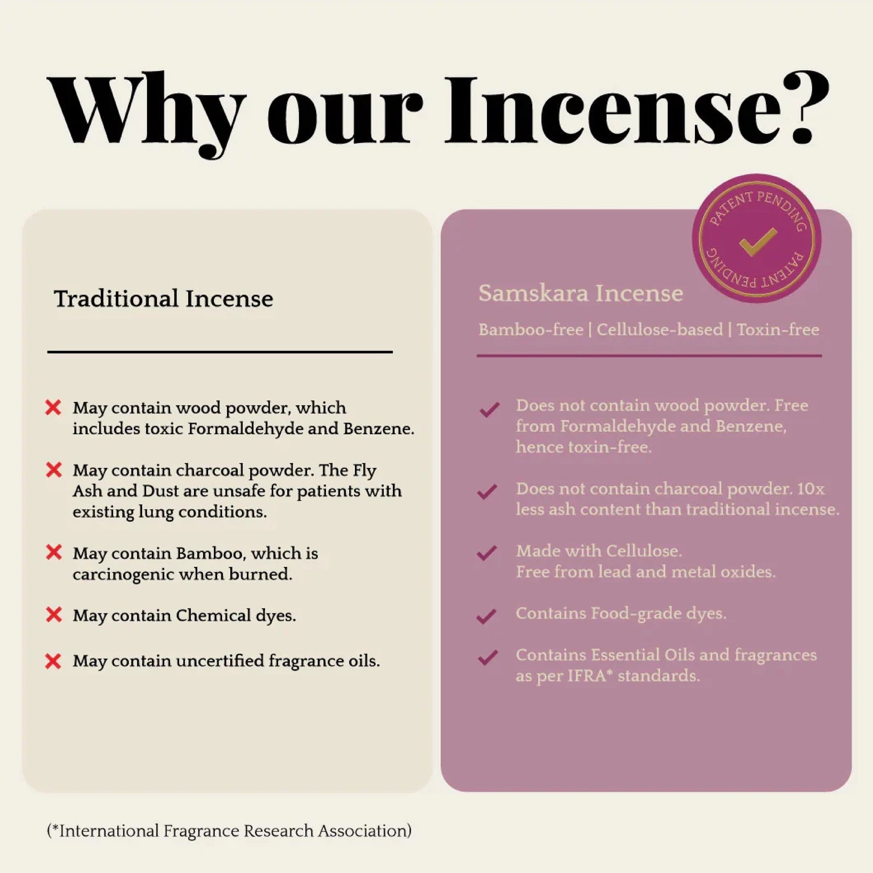 Samskara Home’s Incense Re-imagined is a safer solution to your regular incense problems! They are so fragrant that ONE of our Samskara Home Incense Sticks can replace THREE of your regular incense sticks!