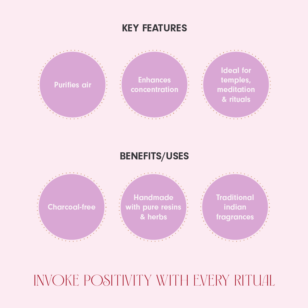 Place Dhoop stick in a sturdy incense holder or holder designed for Dhoop. Ensure the Dhoop stick is secure and standing upright. Keep it away from flammable objects and surfaces. Always supervise the burning Dhoop stick. Keep out of reach of children and pets. Maintain good ventilation in the room.