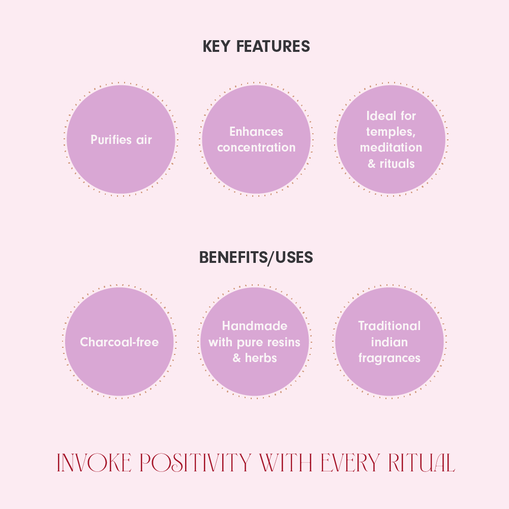 Place Dhoop stick in a sturdy incense holder or holder designed for Dhoop. Ensure the Dhoop stick is secure and standing upright. Keep it away from flammable objects and surfaces. Always supervise the burning Dhoop stick. Keep out of reach of children and pets. Maintain good ventilation in the room.