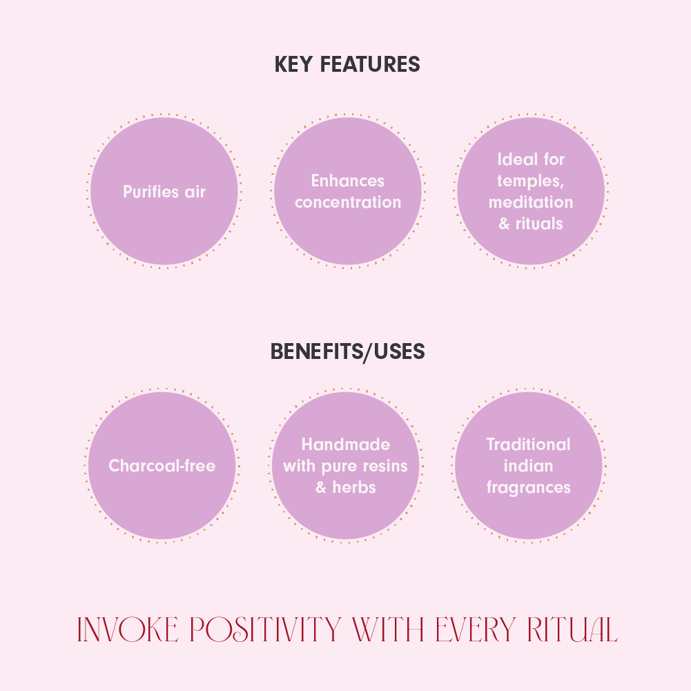Place Dhoop stick in a sturdy incense holder or holder designed for Dhoop. Ensure the Dhoop stick is secure and standing upright. Keep it away from flammable objects and surfaces. Always supervise the burning Dhoop stick. Keep out of reach of children and pets. Maintain good ventilation in the room.